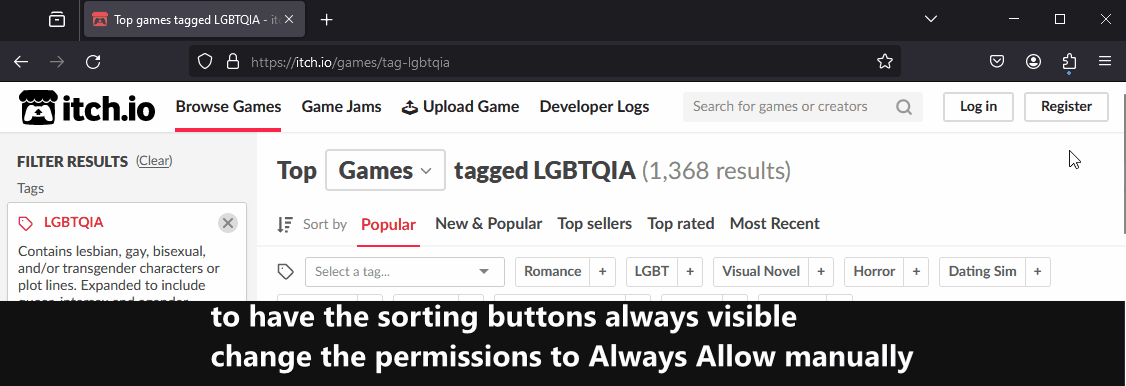 Tags | addon, browser, browser-addon, extension, firefox, itch, itchio |